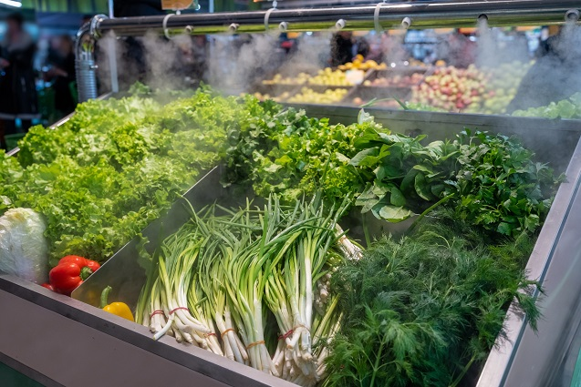 Les systèmes de brumisation de produits frais BRUMEST© utilisent uniquement de l'eau du réseau, sans produits chimiques ni additifs et sans calcaire