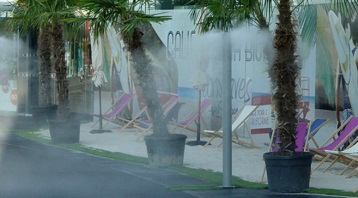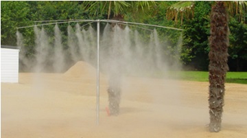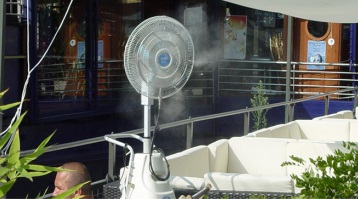 La brumisation peut abaisser la température lors des fortes chaleurs dans les lieux publics, parcs, aires d’autoroute, piscines, garderies, centres commerciaux et aussi sur les terrasses de bars ou de restaurants. La baisse de température par les brumisateurs s'avère moins onéreuse que par les méthodes conventionnelles de climatisation. Les brumisateurs créent un brouillard de micro-gouttelettes de 1 à 5 microns rafraichissant ainsi les espaces sans les mouiller et y abaissent la température.