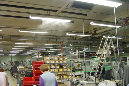 Les boîtiers de contrôle vous offrent une flexibilité totale pour vous adapter aux exigences de votre installation. Les zones de brumisation peuvent être situées dans toute la surface ou partiellement dans ce cas les zones brumisées seront un oasis de fraîcheur pour les personnels qui s’y rendront pour échapper à la chaleur des ateliers.